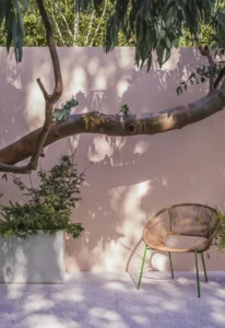 Buitenmuur geschilderd met Farrow and Ball in de kleur Setting Plaster.